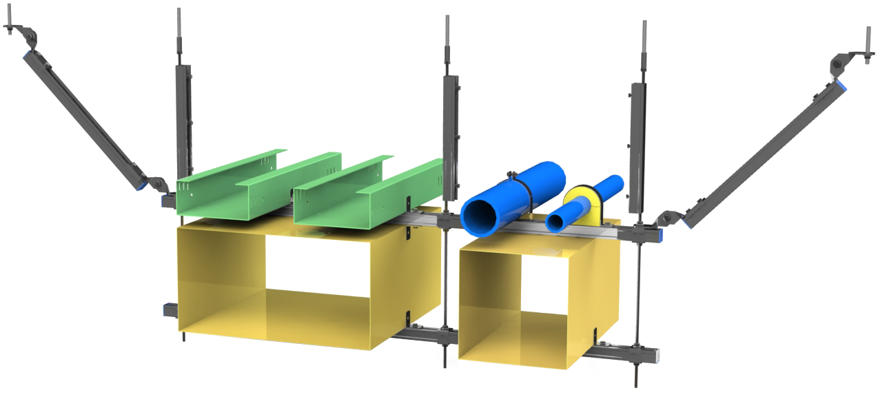 為抵抗水平地震荷載,支架必須在縱向和橫向平面內(nèi)有足夠的剛性支撐,并選擇合適的緊固件錨固于基材中。